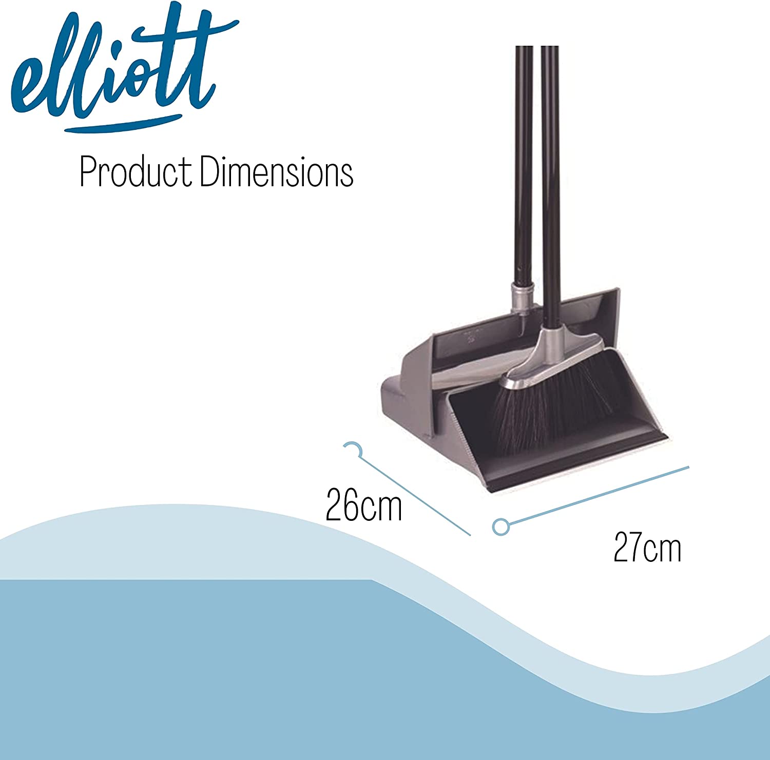 - LOBBY DESIGN: This Elliott Dustpan Set has extra oing handles to help and aid the sweep of floors and reduce the need to bending or kneeling when cleaning