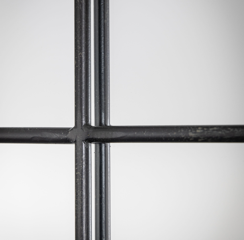 Boldly chic this large window style mirror will add a touch of refined elegance to any interior. Divided into panes with black graphic lines this mirror will enhance your space, making it feel larger and lighter.