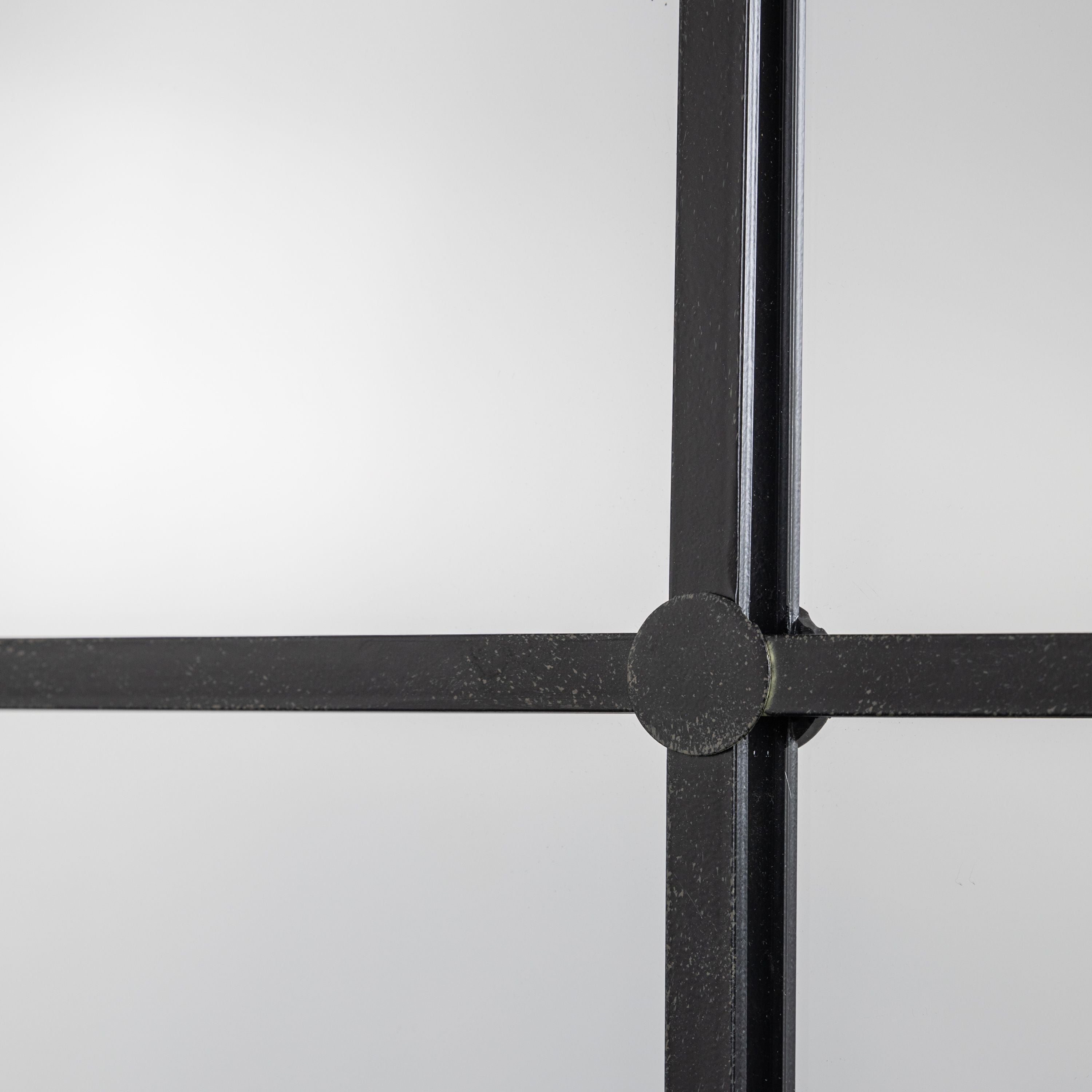 Boldly chic this large window style mirror will add a touch of refined elegance to any interior. Divided into panes with black graphic lines this mirror will enhance your space, making it feel larger and lighter.