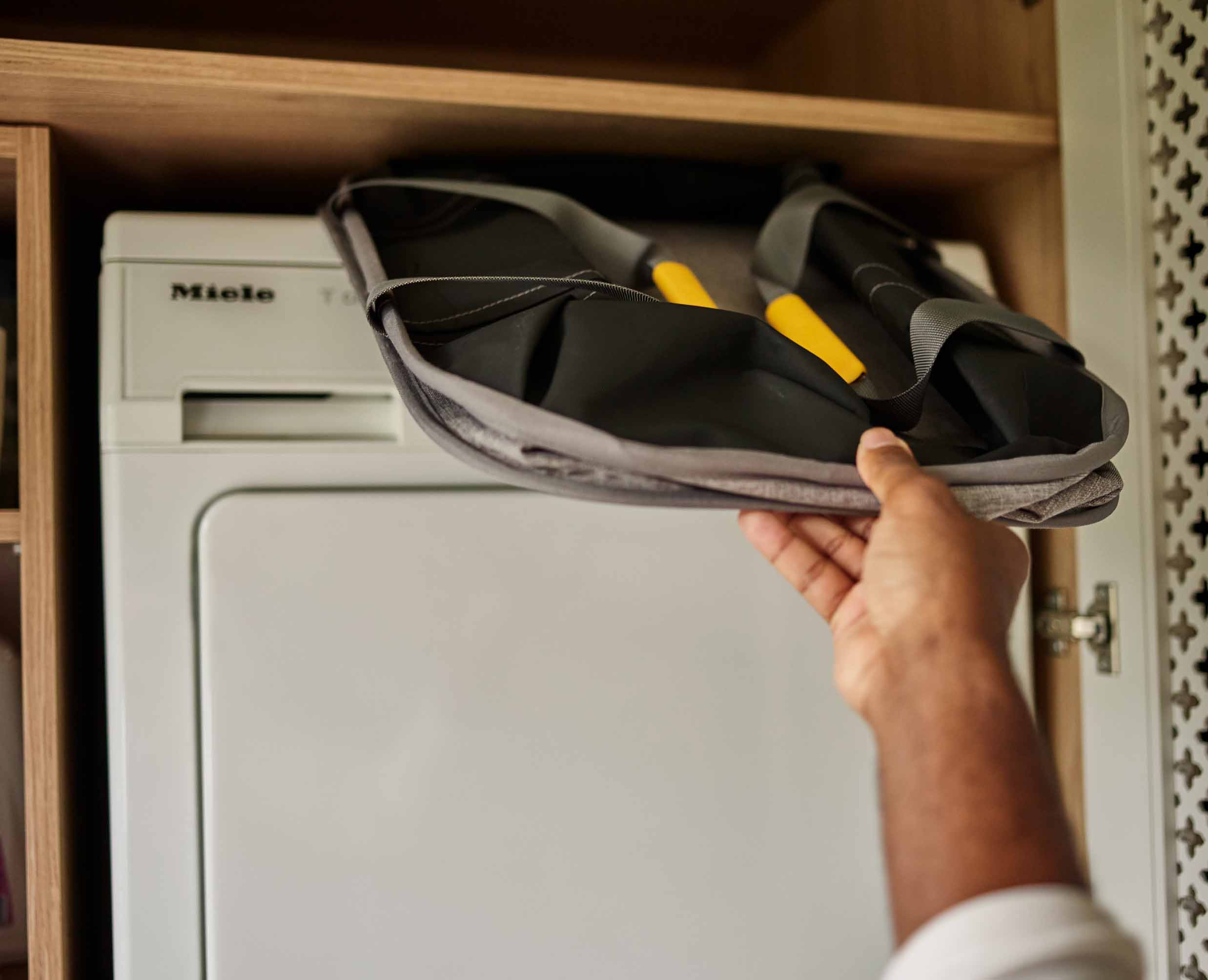 - Folds flat for easy storage in a cupboard or above your washing machine