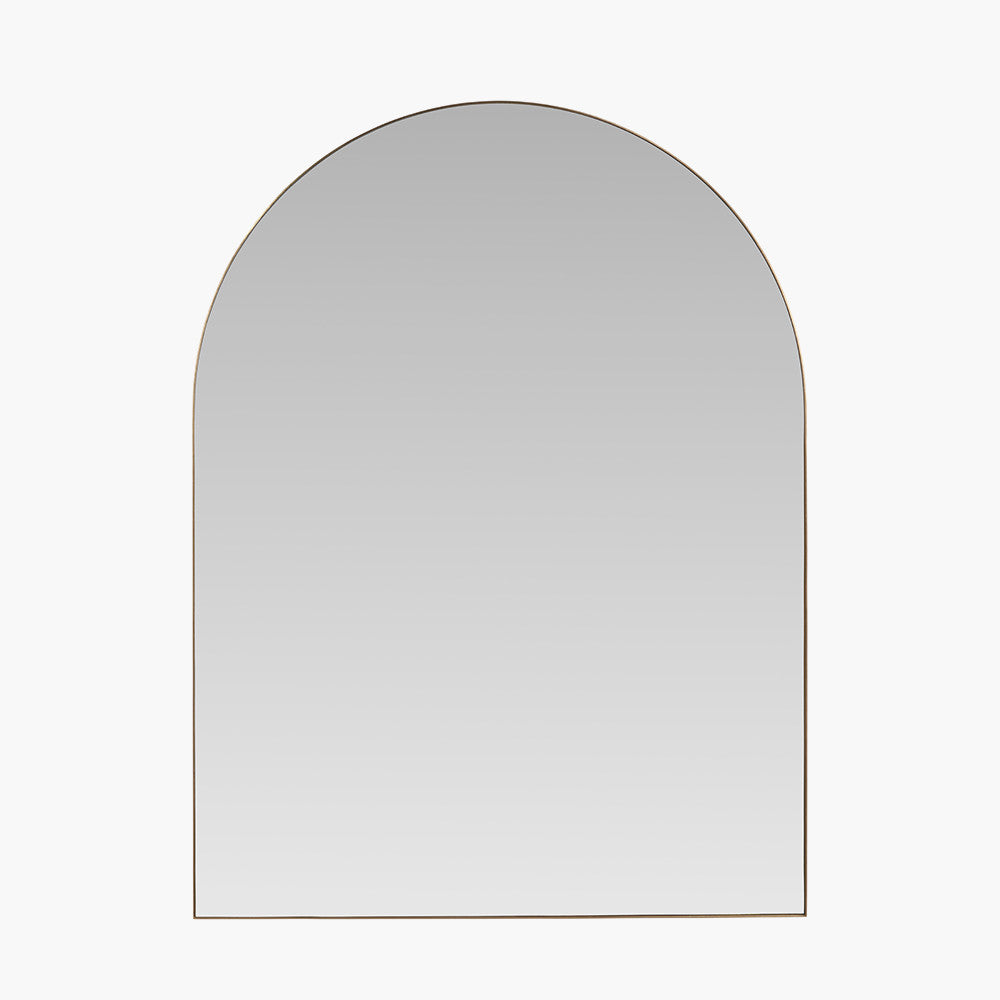 This elegant gold tall arch mirror is the perfect addition to an industrial or minimalist décor and ideal for rooms with high ceilings. The slim metal frame is finished in a soft brushed gold perfect for adding a spacious feel and brightness to your space. Not suitable for bathroom use.