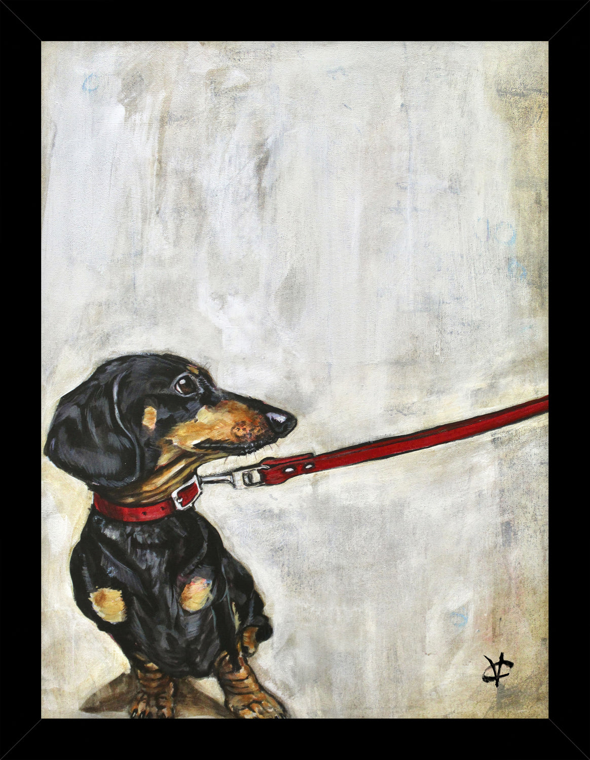 Unleash your inner art aficionado with 'Battle Of Wills' by Victoria Coleman! This unique and playful dachshund artwork, beautifully framed in black, measures 33.5cm x 43.5cm. A perfect addition to any wall, guaranteed to bring a smile to your face (and maybe even a wag to your tail!).