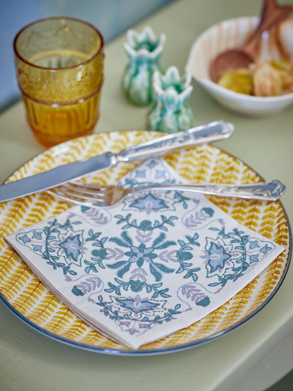 The Alvira Napkin by Creative Collection is made of paper and adorned with an elegant pattern in shades of green. The pack contains 12 napkins - ideal for a balanced and stylish table setting.