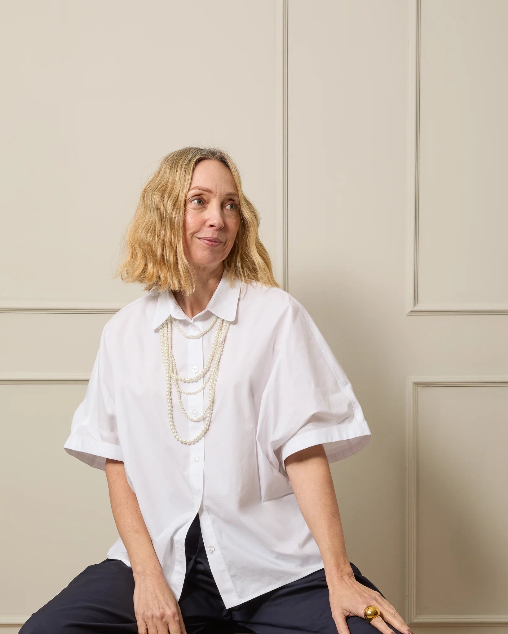 The Broadstairs Necklace is a delicate and stylish statement piece that combines five layers of pearls in varying sizes and lengths. Each layer of lustrous glass beads is thoughtfully arranged, creating a beautiful, cascading effect that adds texture and depth to your look.
