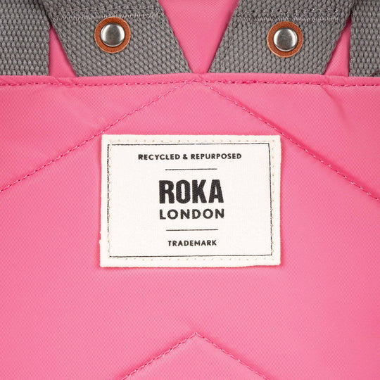The Canfield comes in both Recycled Canvas and Recycled Nylon options. The Nylon has a shiny look and smooth feel, and the Canvas has a textured look and matte feel. See our Sustainability tab below for more information.