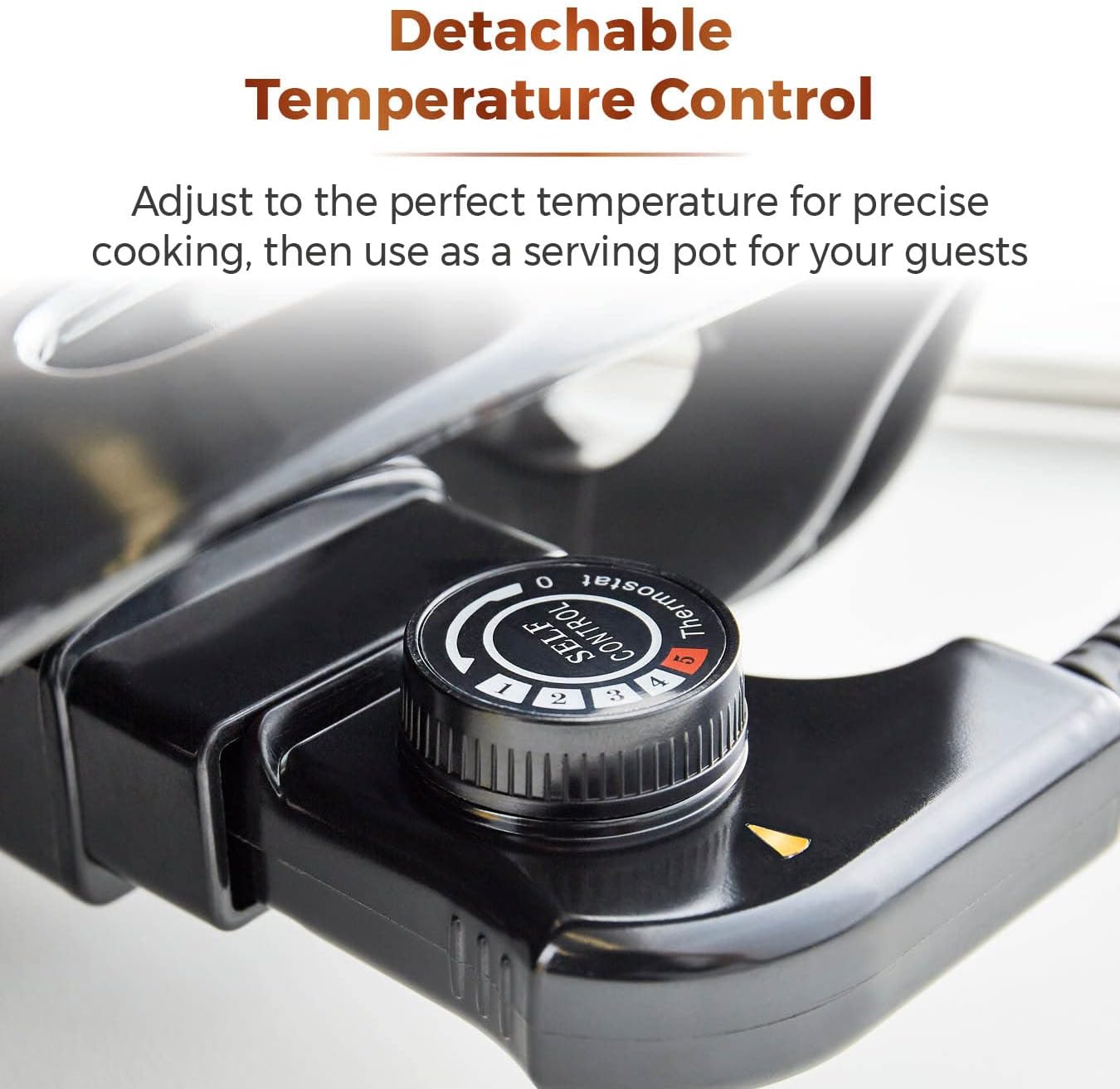 Easily adjust the temperature up to 240°C and have total control over your cooking. Once detached you can use the skillet as a serving pot for your guests, then wash up without any pesky wires getting in the way