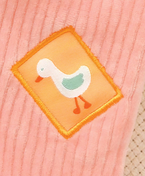 Its floppy ears, pink corduroy coat and woven "goose" label give it an irresistible vintage look.