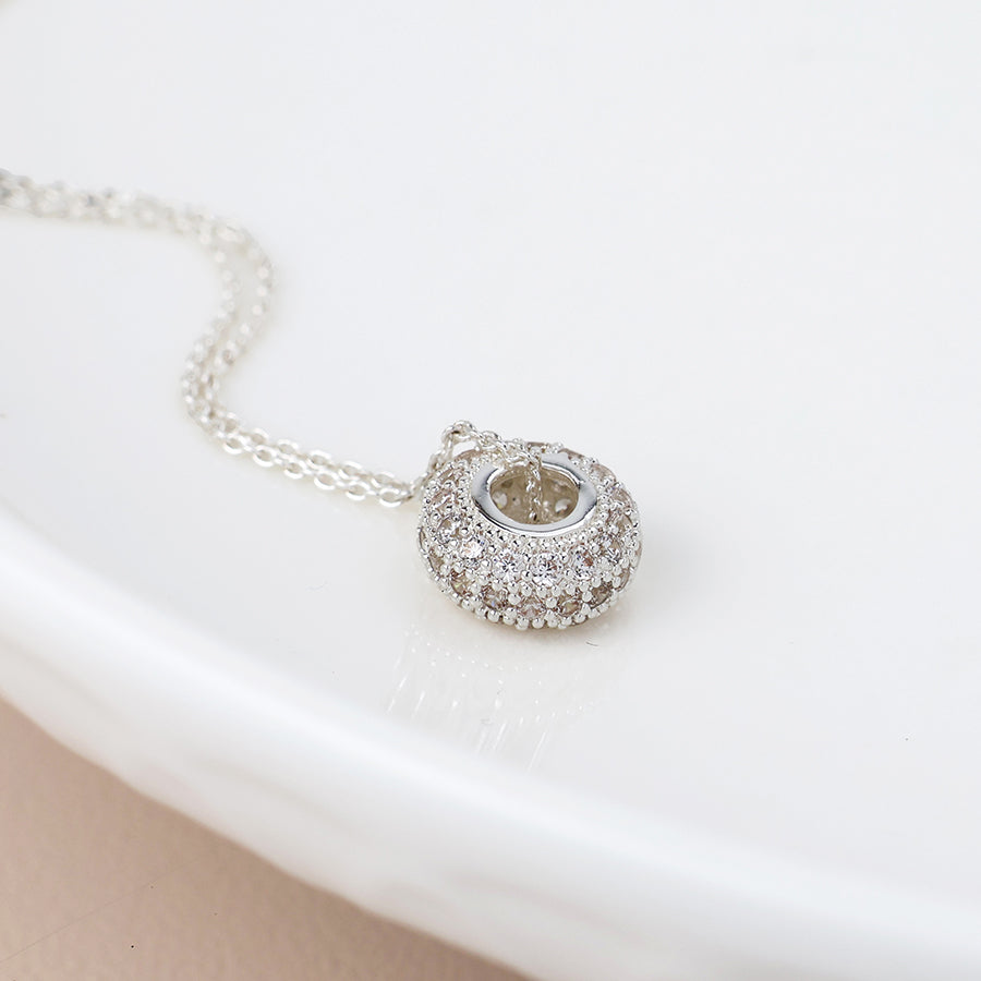 This silver-plated fine chain necklace features a delicate hoop adorned with pave-set crystals, combining subtle elegance with refined craftsmanship. Its minimalist design makes it a versatile accessory, perfect for adding a touch of sparkle to both everyday and formal ensembles. Crafted for durability and shine, this necklace offers a sophisticated statement with understated charm.