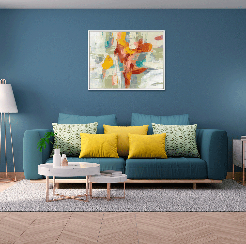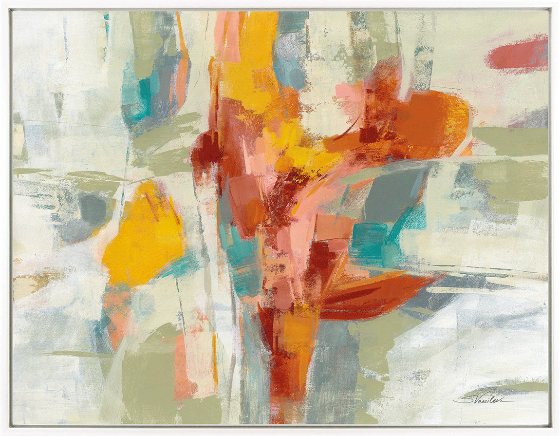 This framed canvas features eye-catching, colourful Spring tones and has been finished in our Matt White L Shape frame.