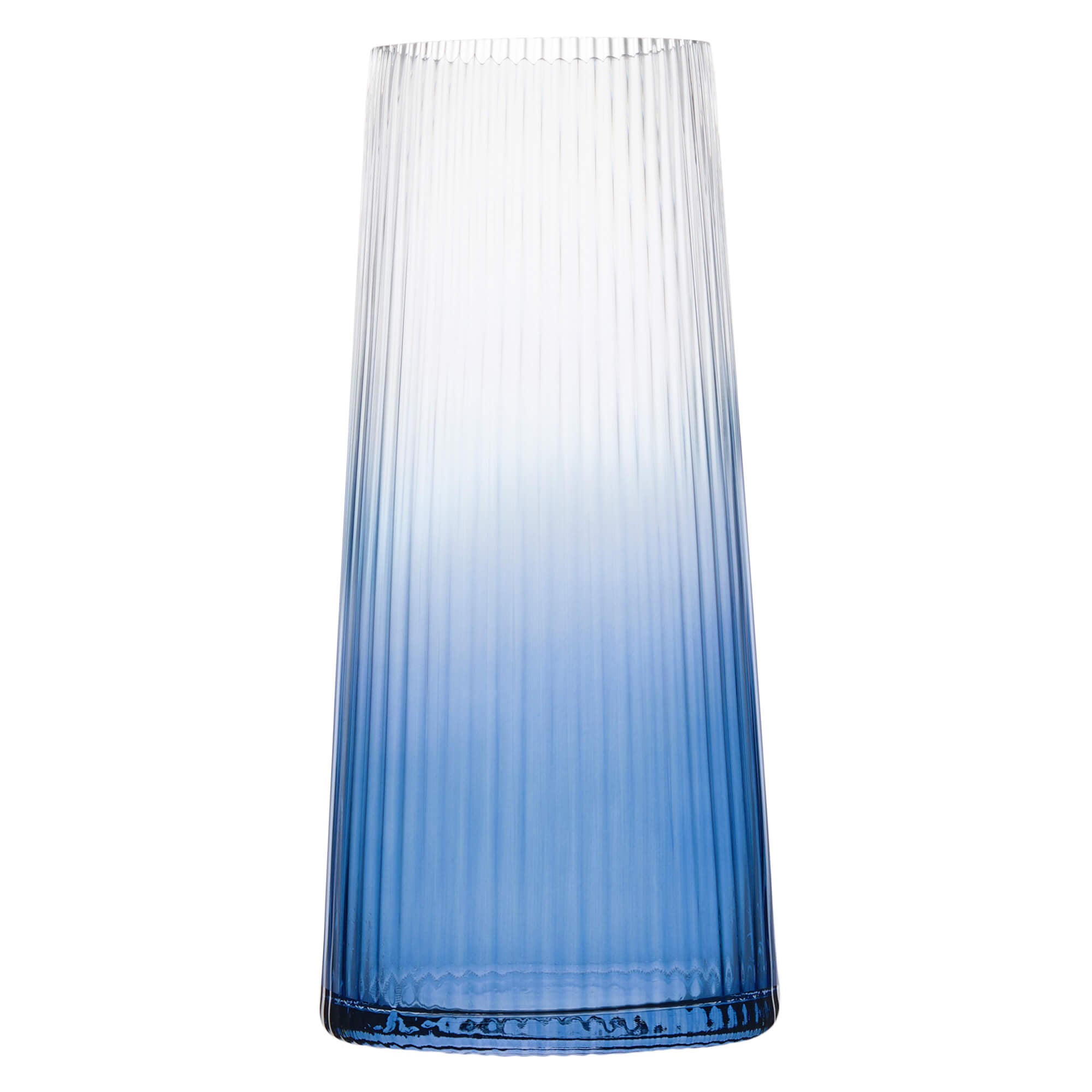 Expertly mouth blown and hand crafted, each piece showcases the collection’s signature fine vertical optic, and tall, tapering sides.