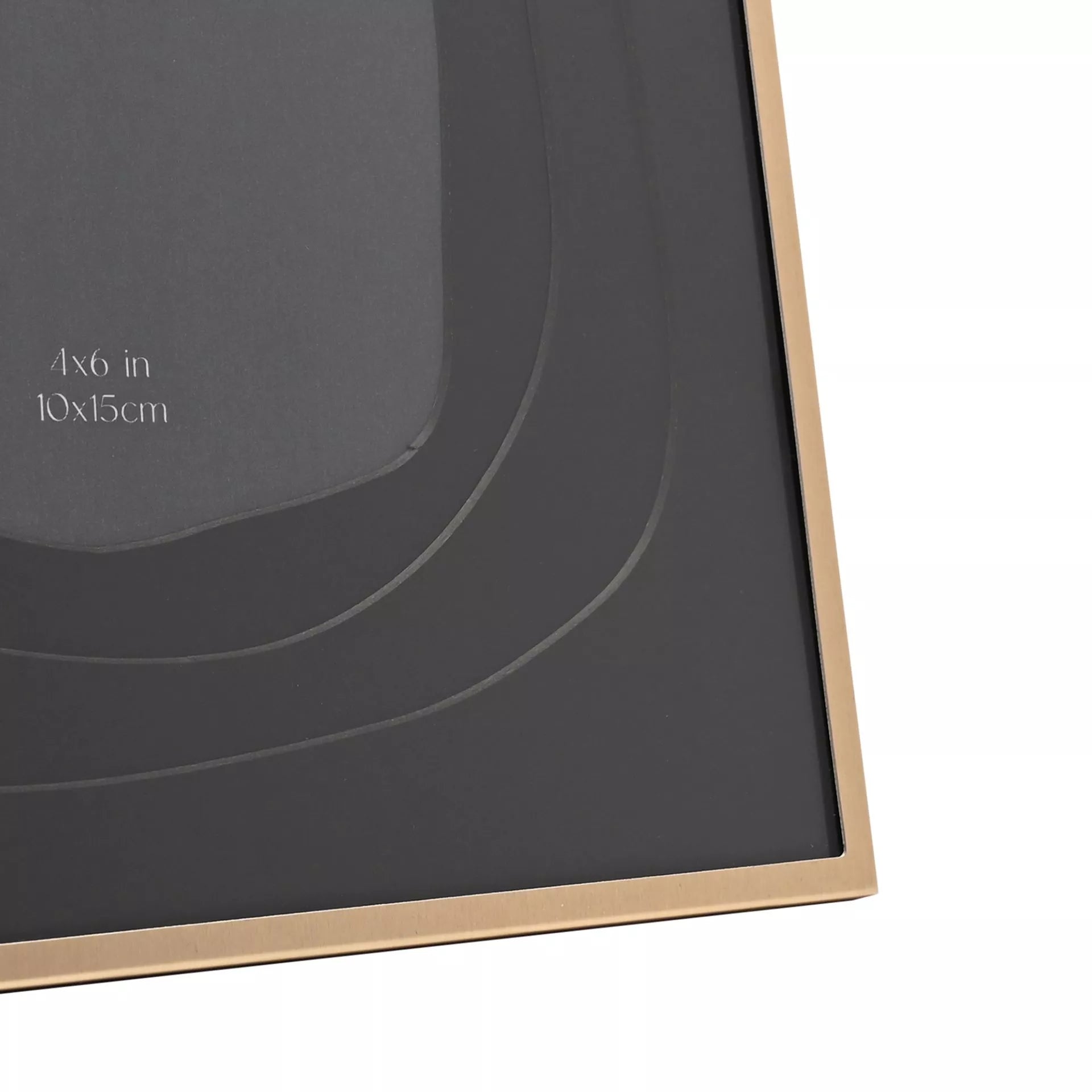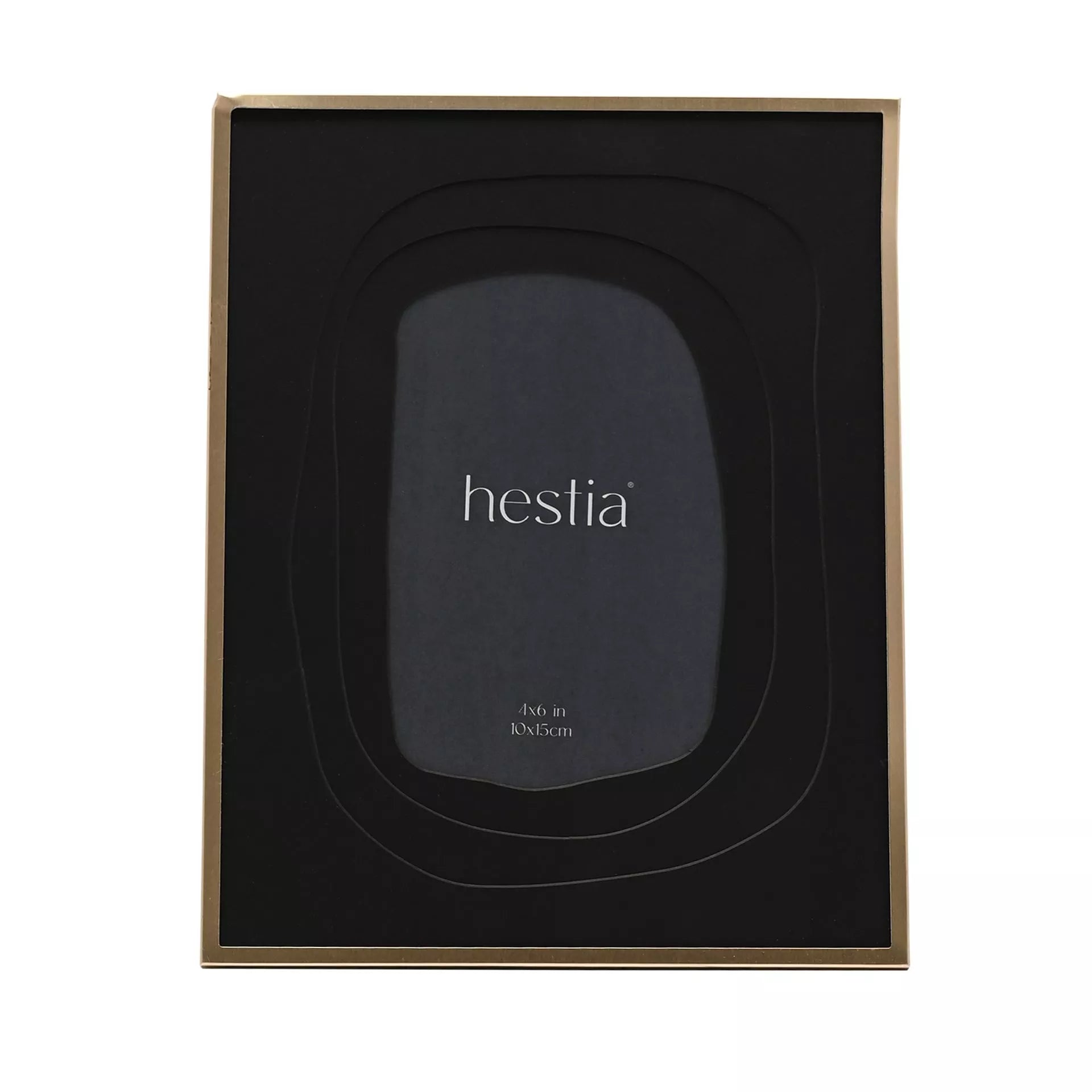 The Hestia Gold & Black Aluminium Photo Frame Layered Mount makes a striking statement with its bold contrast of gold and black. Showcase cherished 4" x 6" photos with this frame's layered design, adding visual depth and interest.