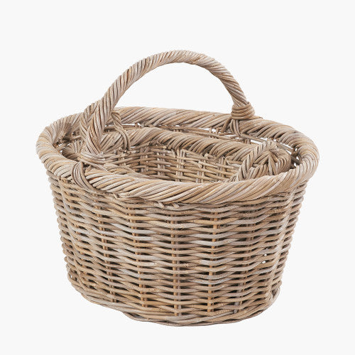 Indulge in rustic charm with our choice of 3 tobs® oval rattan shopping basket or trays. Handcrafted in Indonesia from Kubu rattan in a soft grey colour, these versatile storage baskets are perfect for your storage needs. The larger storage basket with a substantial handle is perfect for storing logs, blankets or other household items, while the smaller baskets, also with handles, will look great on a shelf or table top, to organise 'bits and pieces', keeping your home looking neat and tidy. When not in use the two smaller baskets nest neatly inside the larger basket.
