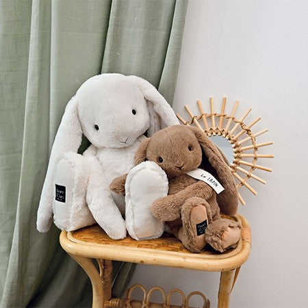 A symbol of tenderness and innocence... The hazelnut brown RABBIT plush toy is more than that! A face, a silky hair, long arms ready to welcome long hugs. Big ears to listen to great secrets and 32 cm of pure Love!