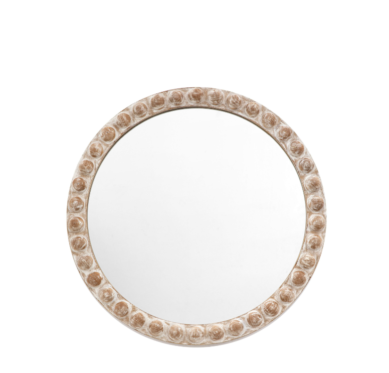 This charming round mirror combines the allure of vintage design with rustic elegance. The weathered finish adds character and warmth to the home whilst the round detailing on the frame adds a subtle classic touch to the home.