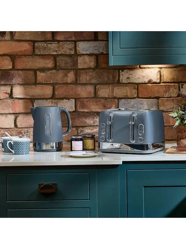 The Laura Ashley Sage Leaf/Dark Slate Kettle brings a refreshing natural tone to your kitchen, blending classic style with modern practicality. Inspired by the soft hues of nature, its elegant finish creates a calming yet distinctive presence on your countertop. With a generous 1.7L capacity, it can serve up to seven cups in one boil, making it perfect for families or entertaining. A powerful 3kW element ensures fast performance, while the 360 swivel base provides cordless convenience from any angle. Complete with a removable filter, cord storage, and boil-dry protection, it combines beauty with everyday ease.