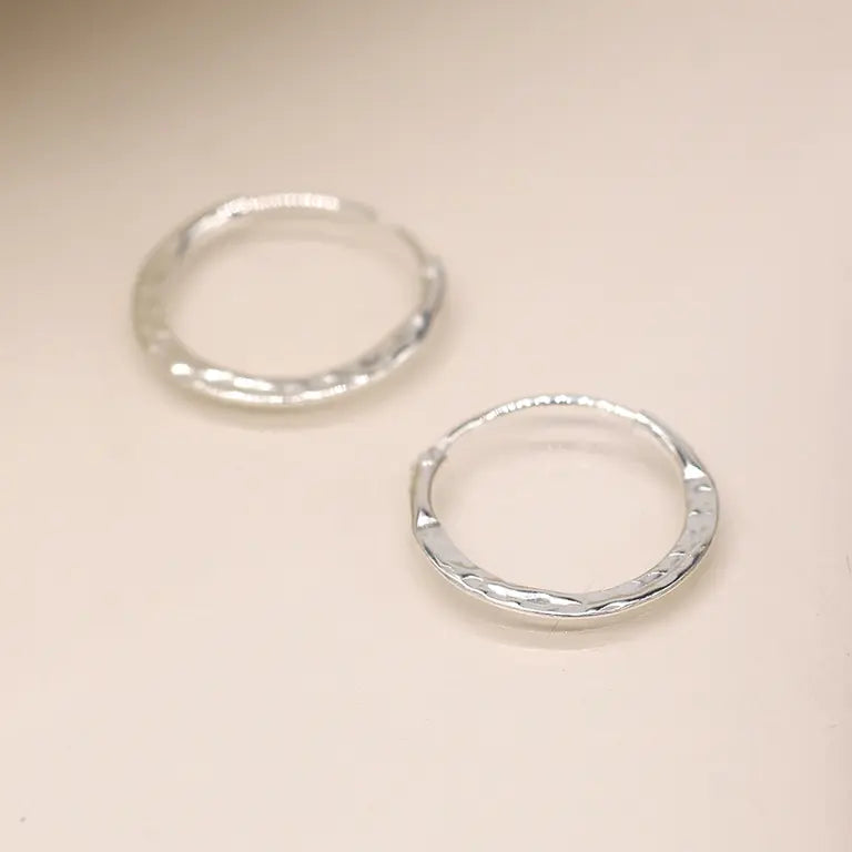 These funky hoop earrings are made of sterling silver and feature tapered tips and a hammered texture for a touch of whimsy.