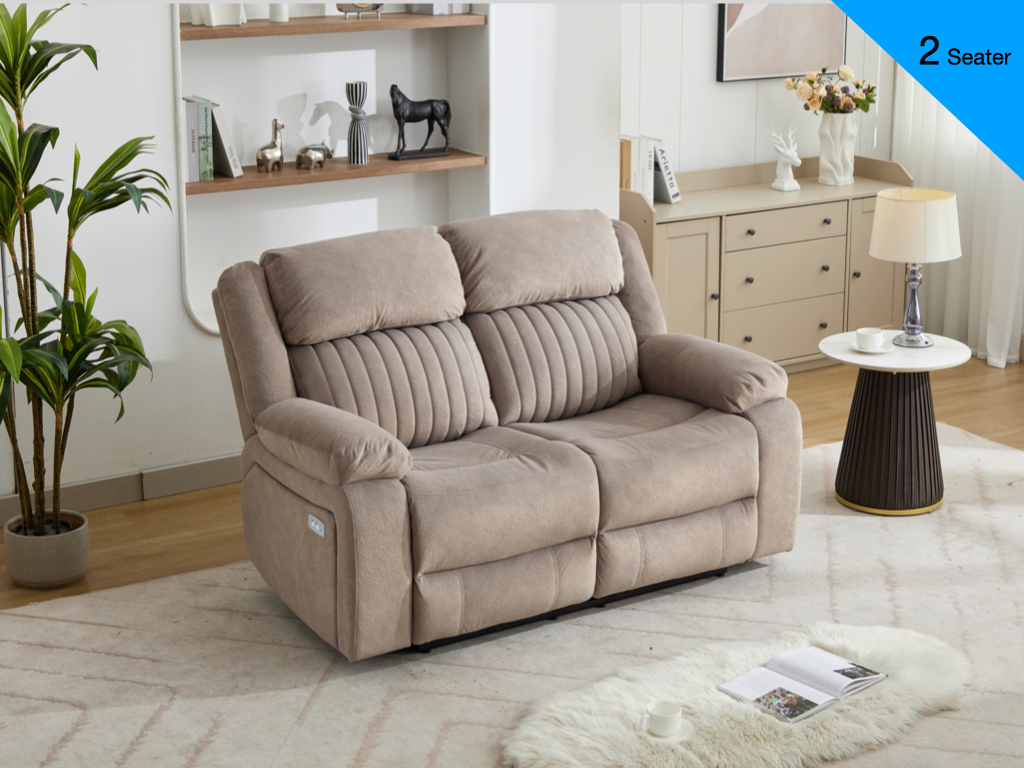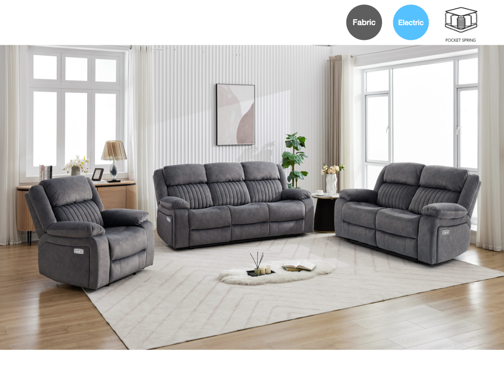 Indulge in ultimate relaxation with this elegant fabric manual recliner suite. Designed for comfort, its plush cushioning and smooth reclining mechanism provide a cozy spot for unwinding. Upholstered in soft, durable fabric, this suite is perfect for any living room, offering both comfort and timeless style. Maverick Electric reclining suite is available in Slate Grey and Taupe and with Pocket sprung seats for added comfort. Available as a 3 seater, 2 seater and, armchair and an Electric corner group.