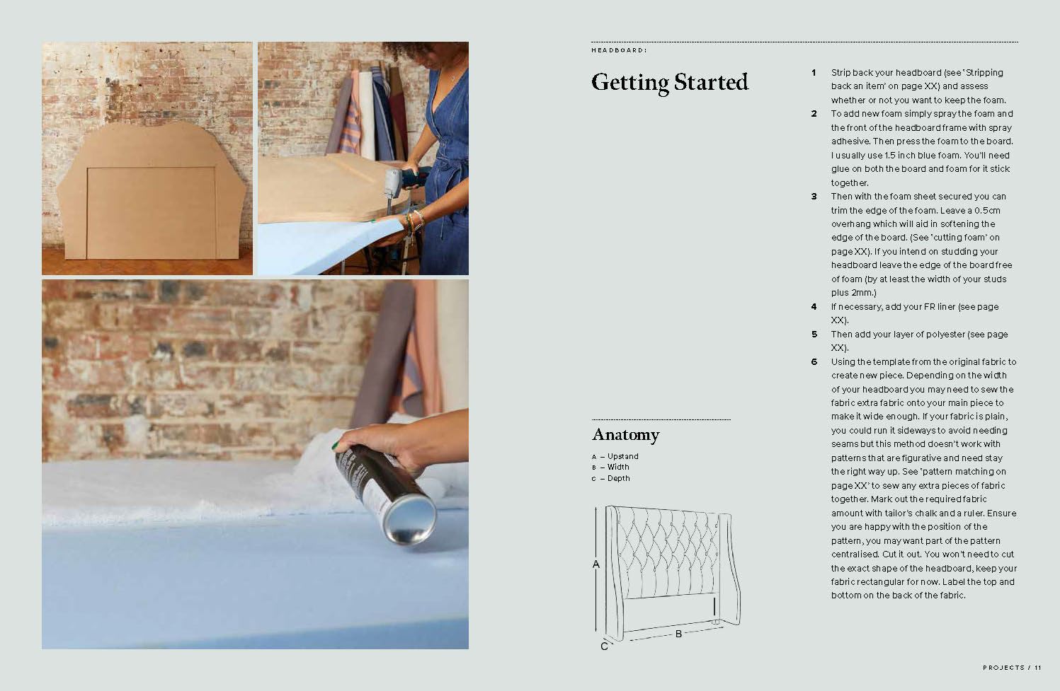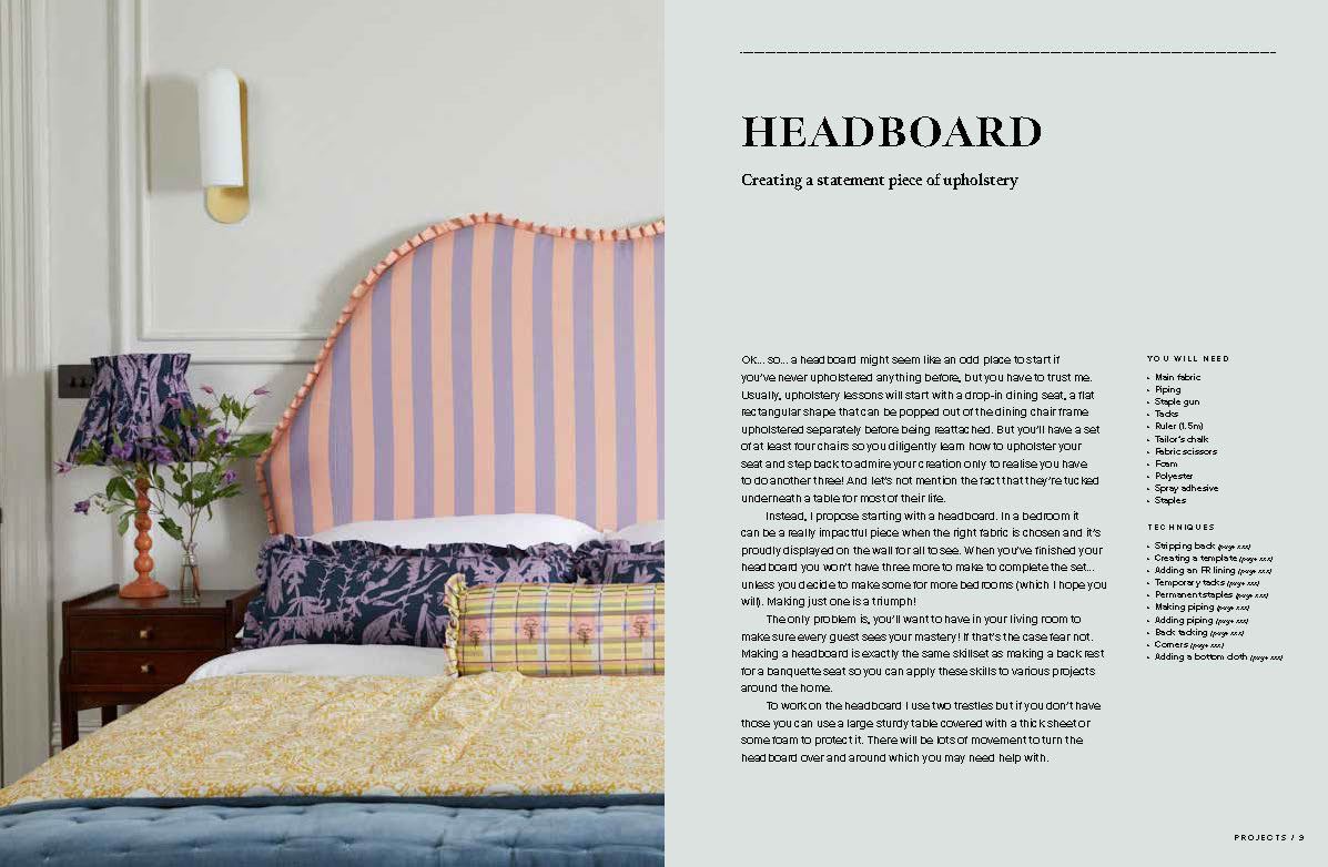 A contemporary guide which demystifies the art of upholstery refurbishment and empowers you to have a go at transforming your own furniture. With information on how to source second-hand furniture and find fabric inspiration, you’ll be able to create more sustainable, and personal pieces. The book features core techniques, from stripping back and handling webbing, through to decorative skills such as adding piping or frills, which you can use and adapt to whatever style of furniture you have in your home. There are also four projects: a headboard, footstool, window-seat cushion and armchair.