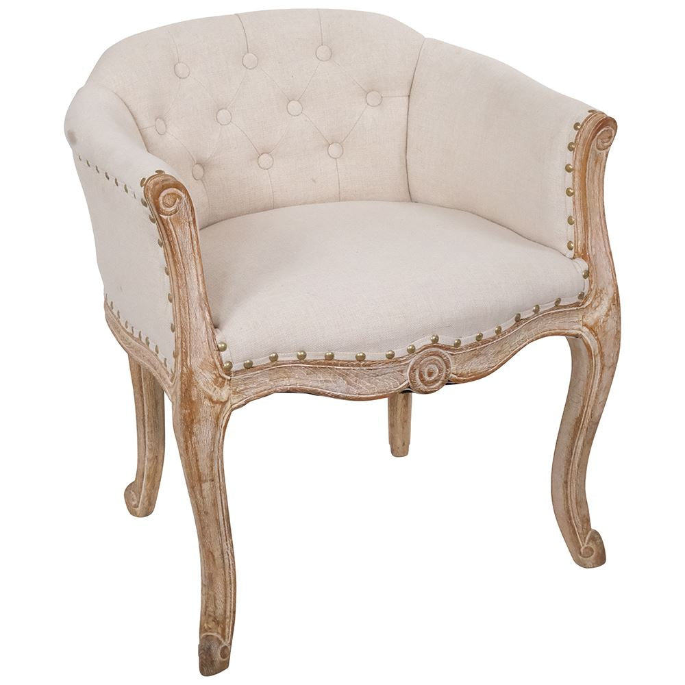 10190 Stunning ornate accent chair with beige fabric and white-washed wooden legs.