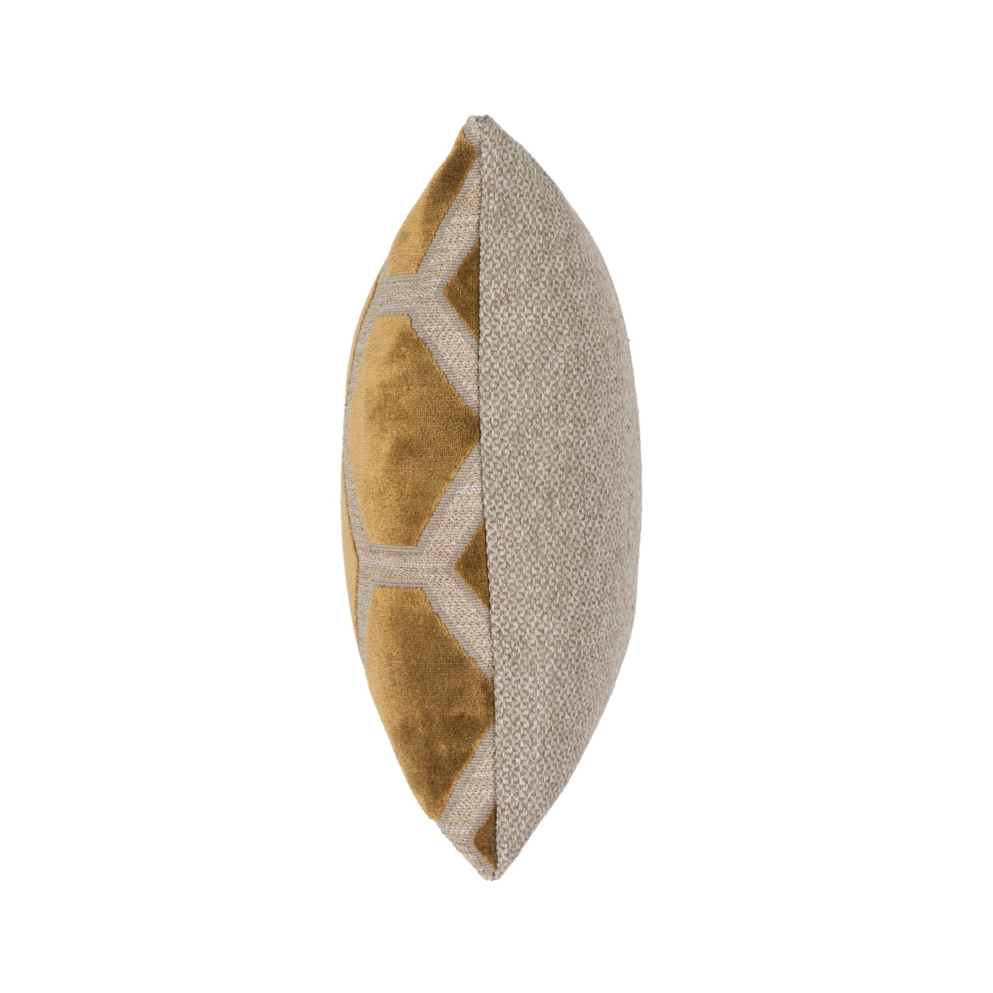 The Orva cushion is a bold, contemporary design that brings rich texture and graphic impact to interior spaces. Featuring a single-sided cut velvet front with a striking geometric pattern, the design creates depth through contrast and tactile variation. The reverse is finished in a smooth plain fabric for balanced styling, while the knife-edge finish keeps the silhouette clean and modern. Available in Gold, Silver, and Black, Orva is designed to make a statement while layering effortlessly with plains and textured cushions.