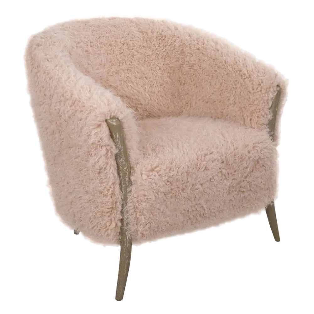 10178 Fluffy blush tub chair with wooden legs - The perfect accent piece for any living space.