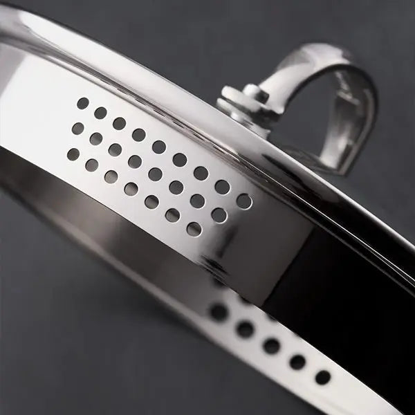 - Time-saving dual-sided glass draining lids with vents for no over-boil