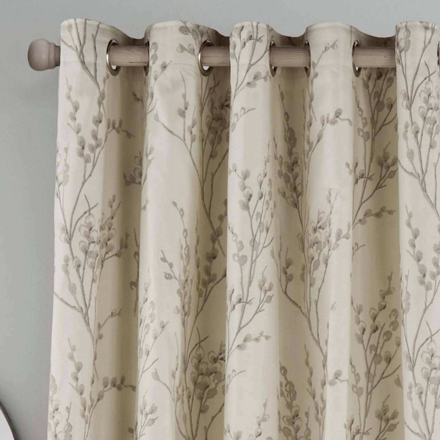 The elegant Laura Ashley Pussy Willow print is inviting in fresh seaspray on a background of off white. Delicate branches of budding pussy willow sprawl across these 100% cotton curtains. Fully lined and with a eyelet header to instantly enhance your interiors.