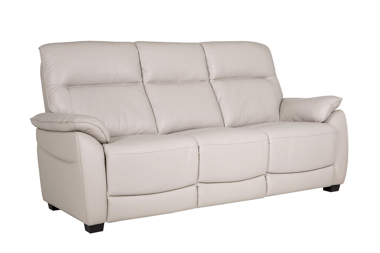 The Naomi Suite is available in a range of colours (Cashmere, Tan or Steel), functions (Fixed or Power Reclining) and configurations(3str, 2str, chair). The Naomi 3+2 Cashmere fixed suite is currently available in our showroom for viewing. The suite is carefully crafted with a pocket spring system, genuine luxury leather and foam padding in the seats for ultimate comfort. The high back rests and thick padding provide excellent lumbar support.
