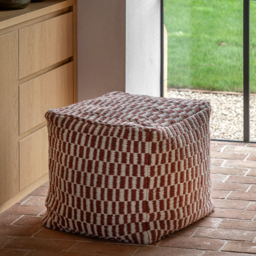 Comfort and style is perfectly combined with this striking pouffe. The eye catching nutmeg check design is bold and modern, adding stand out style to any room. The thick woven material creates a sturdy and practical pouffe that is perfect for putting your feet up or for use as occasional seating.