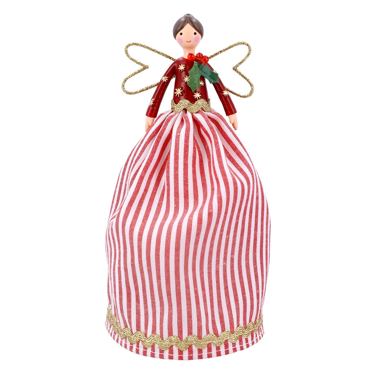 This delightful Gisela Graham Red and White Striped Fairy Tree Topper will make a fabulous addition to your Christmas tree for the festive season. This fairy can be seen wearing a classic striped skirt, finished with an intricate gold trim, and a festive holly detail. She brings a traditional yet playful feel to any room, simply add this fairy onto your Christmas tree and be amazed at the colourful display. With her graceful design and signature Gisela Graham style, this fairy is the perfect finishing touch for creating a warm and inviting Christmas display.