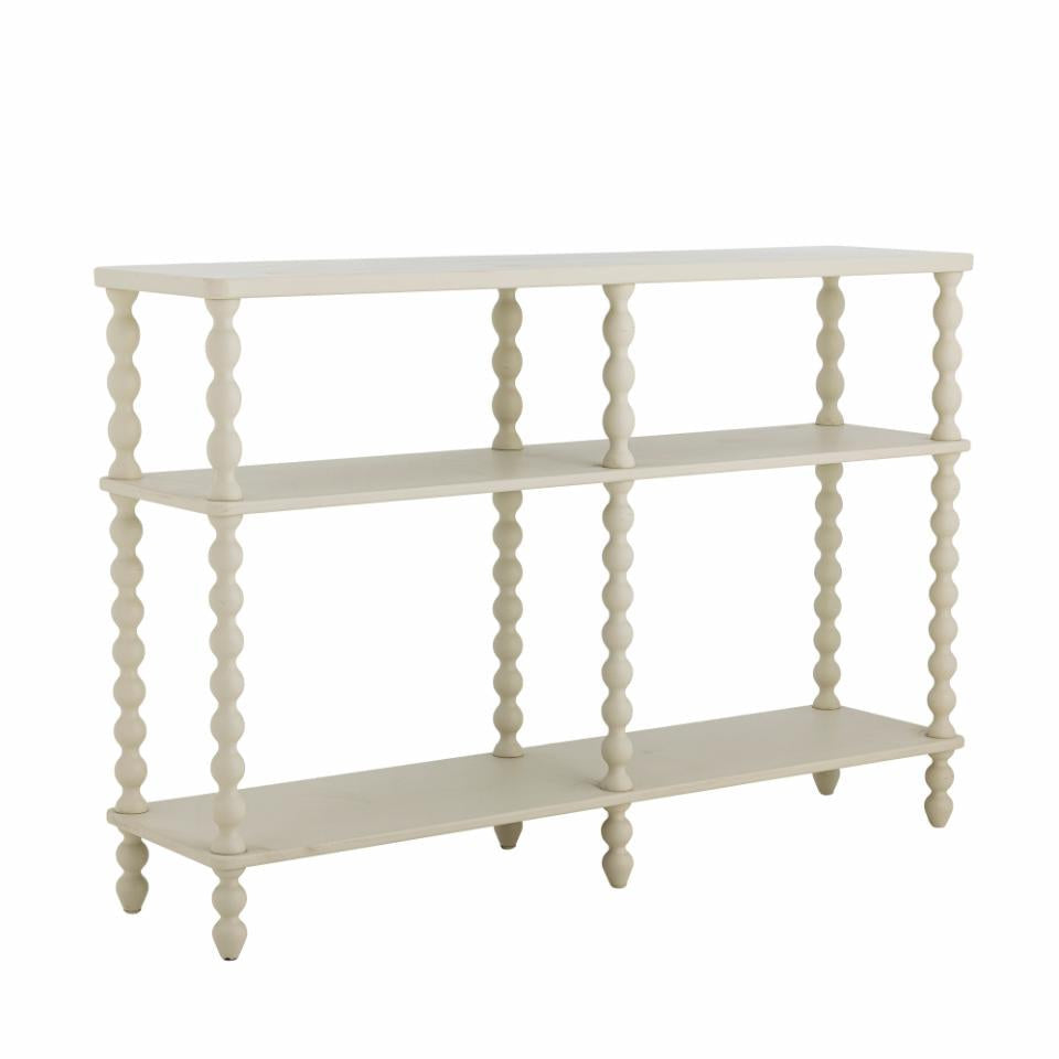 The Salino Console Table by Bloomingville is a charming piece of furniture made of rubberwood, designed with a delicate look. The smooth surface and off-white color create a harmonious and inviting atmosphere. This console table is ideal for the bedroom, living room, or entryway and also works as a lovely detail in a child’s room.