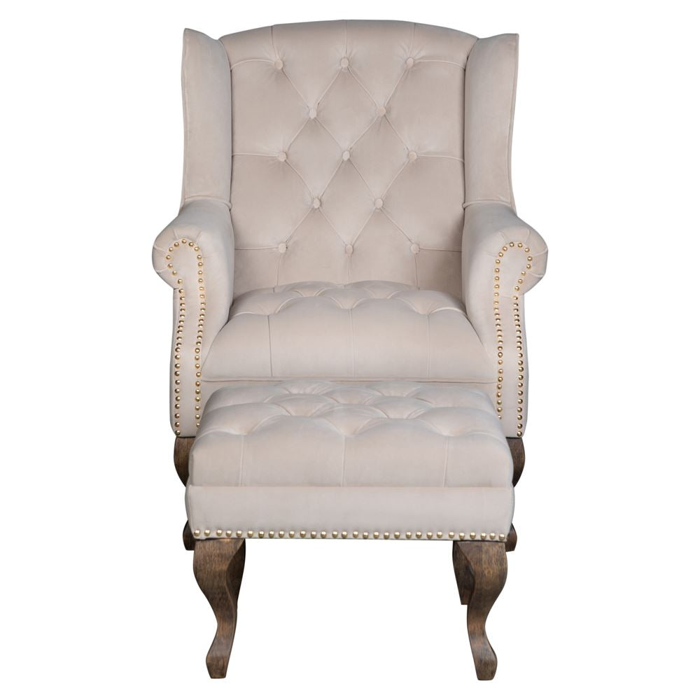 Indulge in comfort and style with our Sandy Button Back Chair and Footstool. Crafted with a luxurious button back design, this arm chair and footstool set will elevate any living space. Sink into the plush cushions and relax in elegance and sophistication.