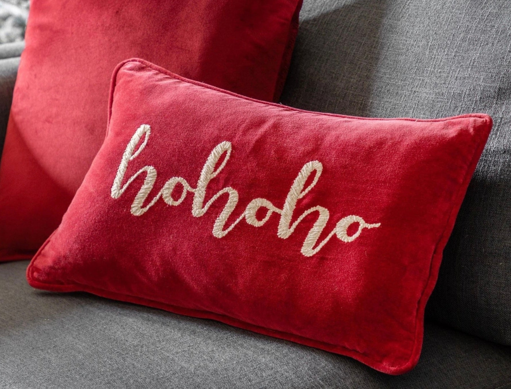 Add a some luxe style to your Christmas with this red velvet embroidered cushion.