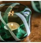 Handblown in green and white candy strip glass, this charming little tealight holder will add some festive fun to a room.
