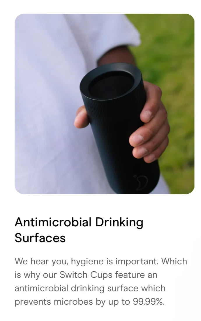 - Cup mode features antimicrobial additives which prevents microbes by up to 99.99%