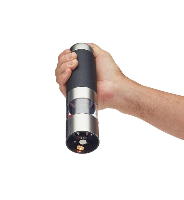 Revolutionise your cooking and enliven your dining table with the MasterClass Adjustable Electric Salt and Pepper Mill. It’s a quick, effortless and versatile way to infuse your food with fresh natural flavours – and it looks great too! Easy One-Touch Operation This electronic grinder is so simple to use, you can keep one hand free for cooking! Simply press the button at the top to start the grinding mechanism – it only takes a second, and the electric mechanism grinds faster than traditional mills too.