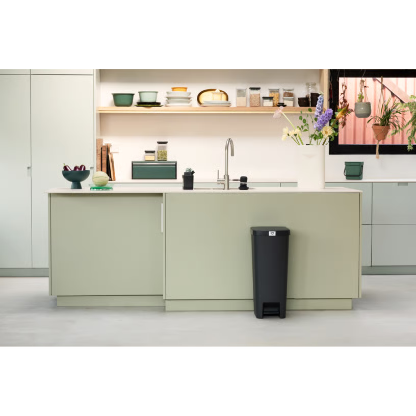 Step up your recycling with the Brabantia StepUp pedal bin 40L! Made from 91% recycled waste and made for recycling waste. With a click-on label holder for your own waste labels and handy bag storage inside the bin. If you love recycling, you will surely love this bin.
