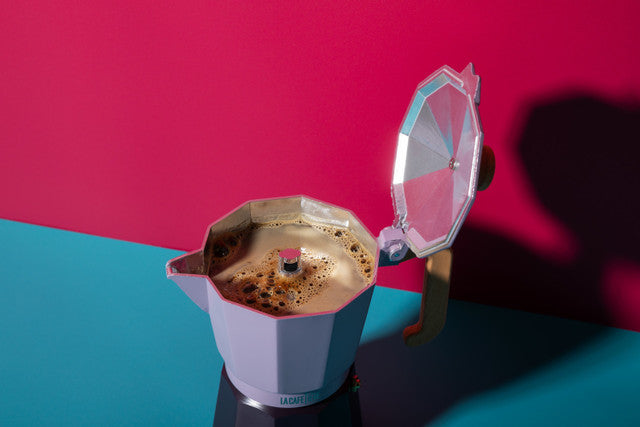 Discover the joy of making traditional espresso with our 6-cup Espresso pot in stunning purple colour. Made from high-quality aluminium, this espresso maker heats up quickly and is compatible with gas, electric, and ceramic hobs, making it versatile for any kitchen setup. Classic Italian moka pot design embraces the essence of Italian coffee culture with our beautifully designed espresso pot.