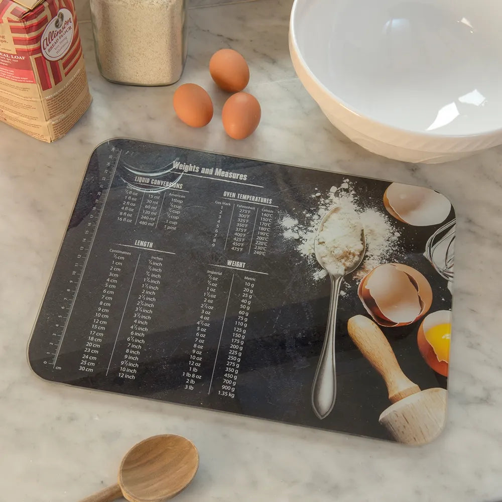 This 50 x 40cm clear glass is both stylish and functional. Not only is it odour and stain resistant, but it's also heat resistant up to 250°C. Use it to prepare and serve food, or even protect your surfaces and tables from heat damage. Made by Tuftop in the UK, this toughened glass is both durable and versatile. The textured glass surface is perfect for preparing and rolling pastry or dough, making it a must-have for any kitchen. Please note, do not submerge this product in water, simply wipe clean for easy maintenance.