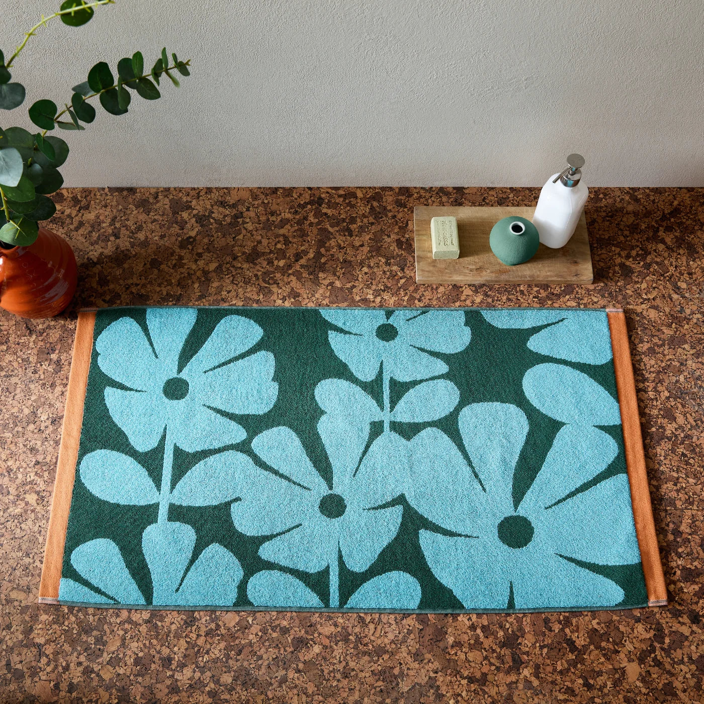 Deep jade green and bright sky blue are woven together to bring Orla’s signature floral motif to life in soft, absorbent 100% cotton. Finished with a joyful pop of orange at the border, these towels are made to brighten up your bathroom with a splash of mid-century charm.