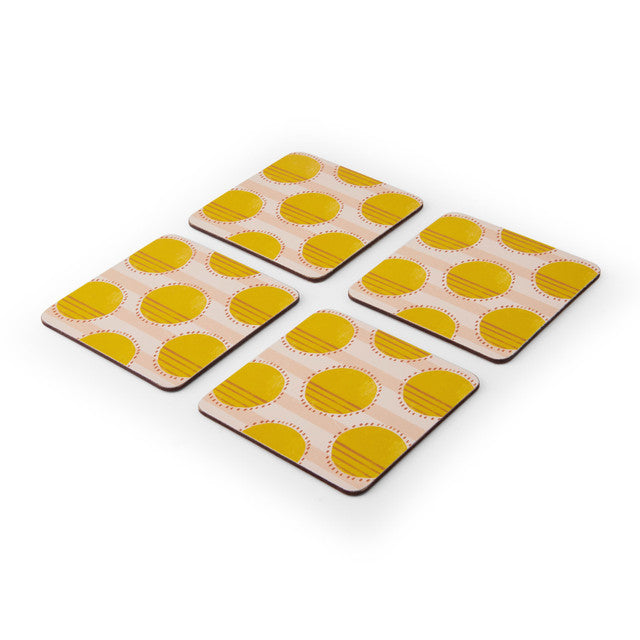 This set of 4 coasters is designed to protect your tables while offering a vibrant and stylish touch. Featuring beautiful and vibrant prints and a sturdy cork backing, these coasters are a practical and chic addition to your décor. They protect your surfaces from hot mugs, glasses, or cups. Designed in the UK, they combine style with functionality to brighten any setting.